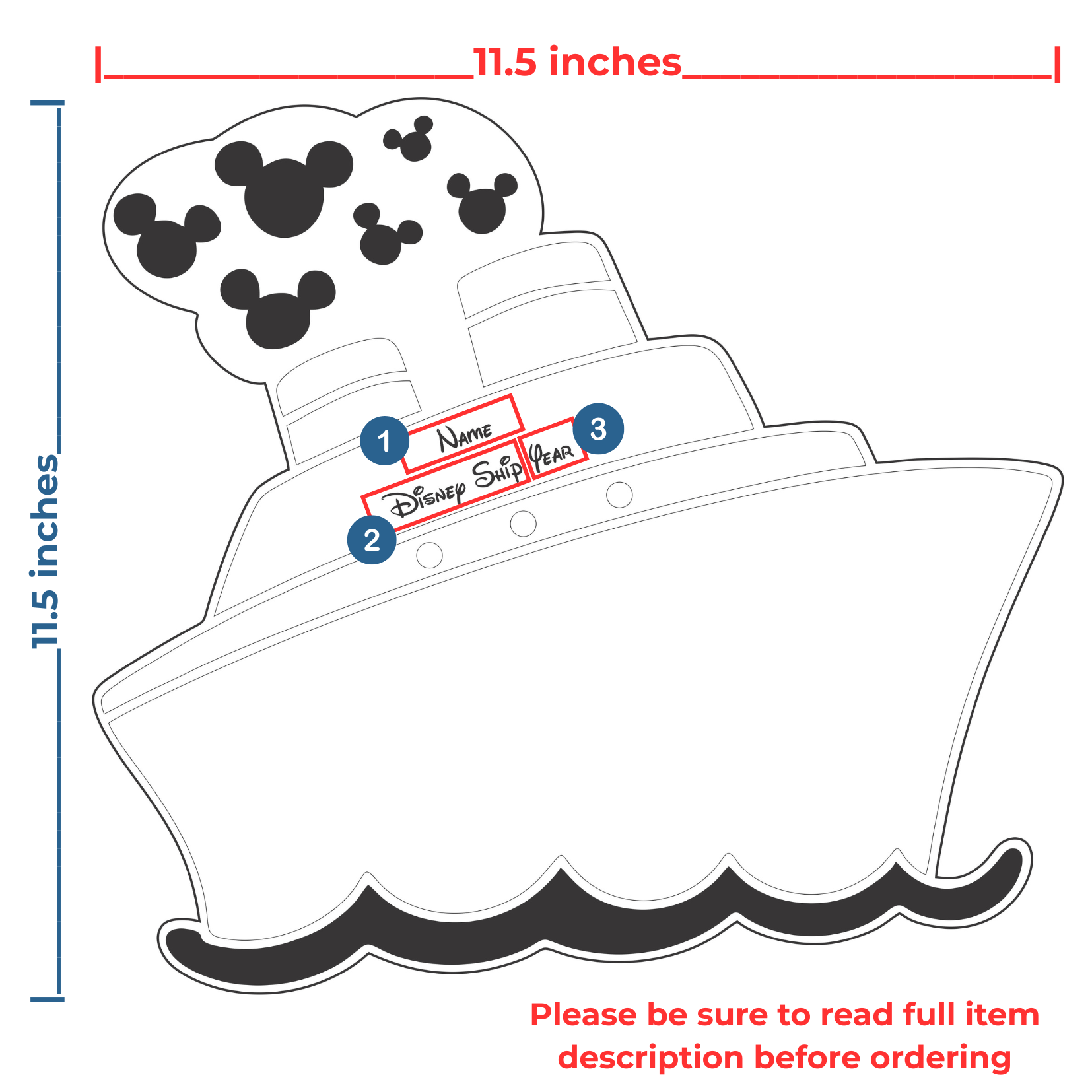 - Personalized with up to 3 fields (Family Name, Ship Name, Year)