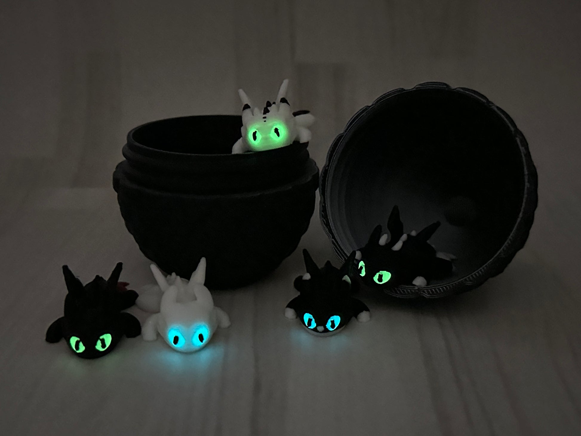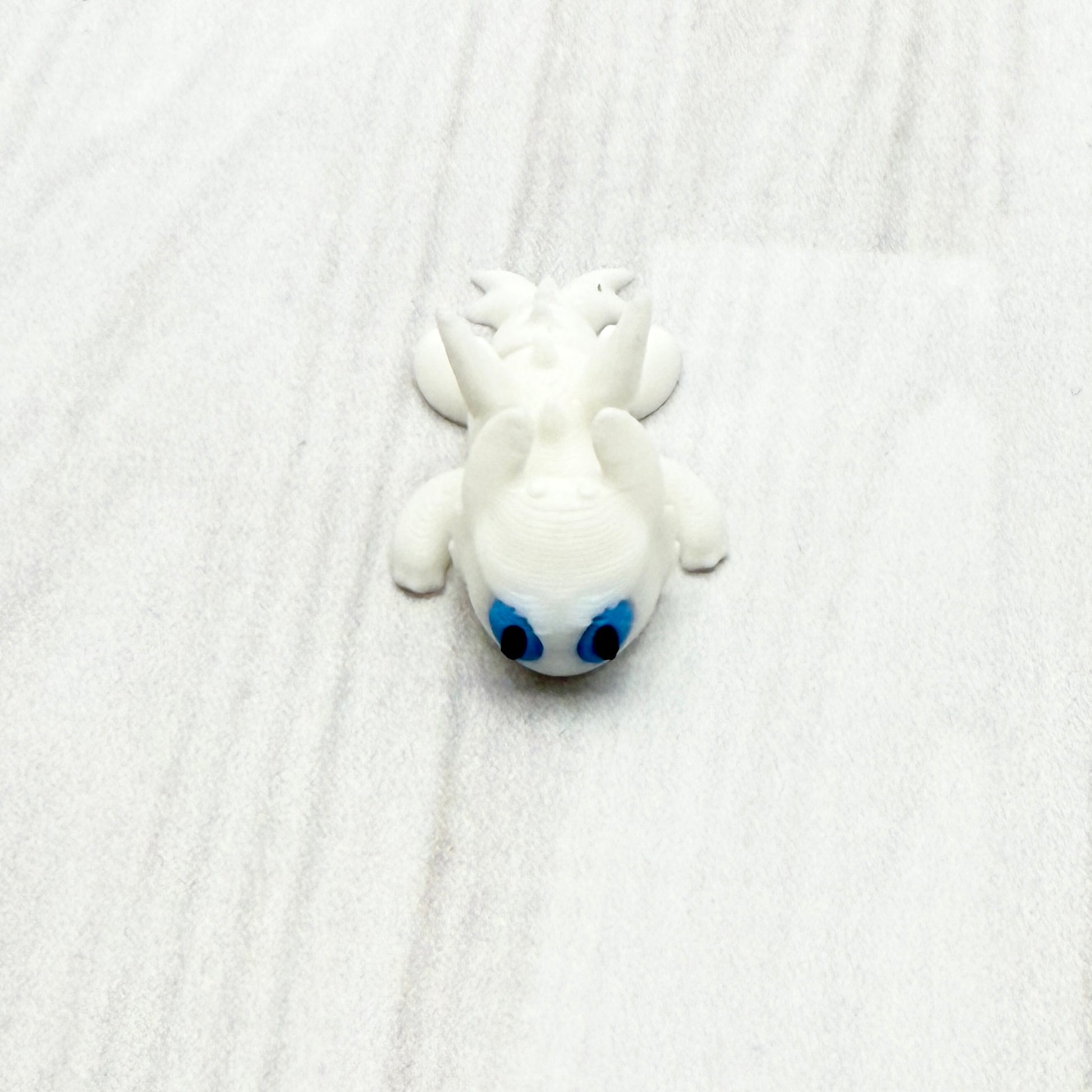 Bring a touch of fantasy magic to your collection with these fully articulated mini wiggle dragons! Each piece is 3D printed, hand-assembled, and features glowing eyes that come alive in the dark. Perfect for plush displays, shelf styling, or as a playful desk fidget, these dragons are a charming nod to beloved animated favorites while standing as unique handmade creations of their own.