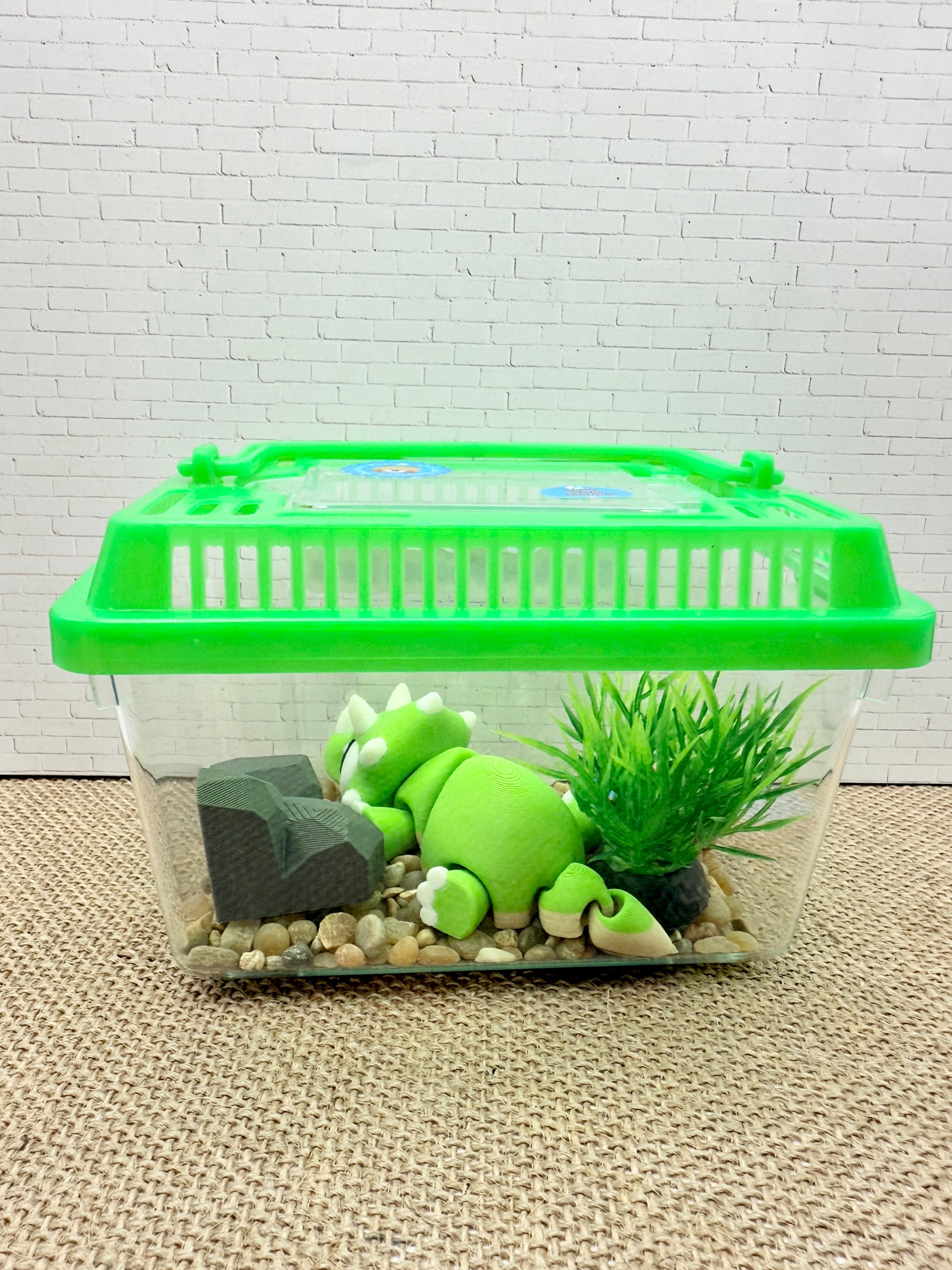 Inside the terrarium, your dinosaur relaxes among natural textures and cozy details, making it perfect for display, gifting, or imaginative play.