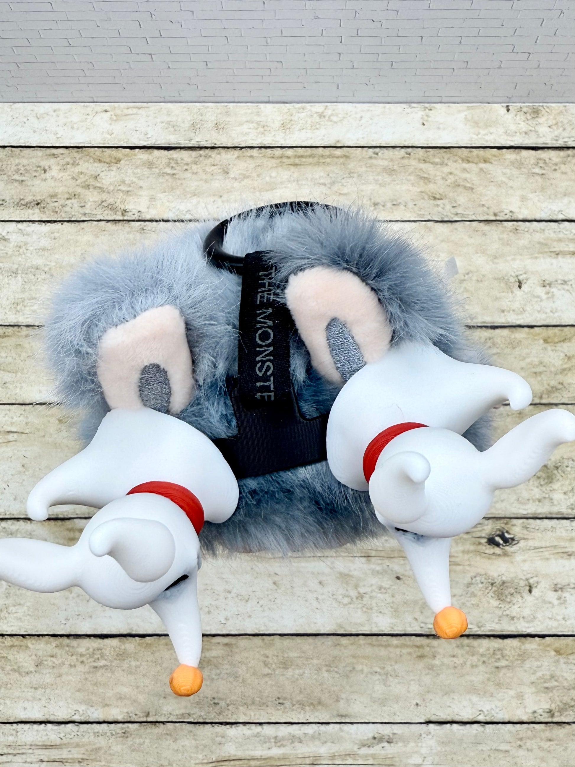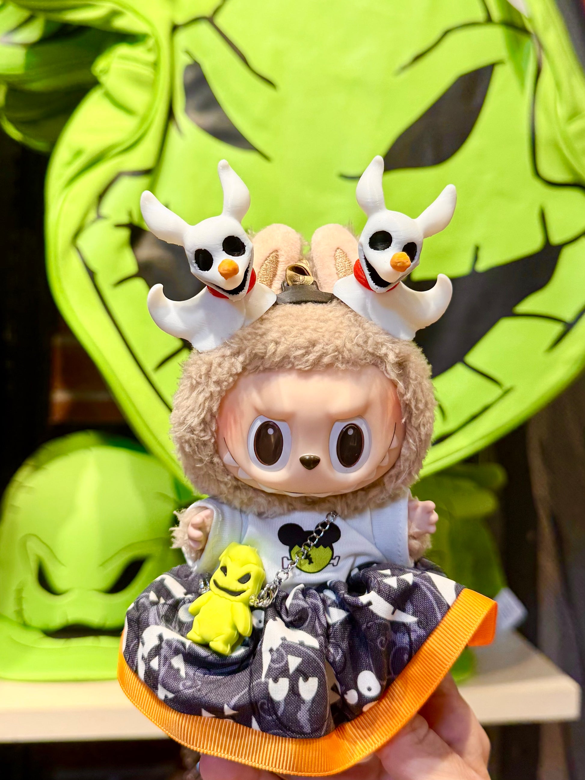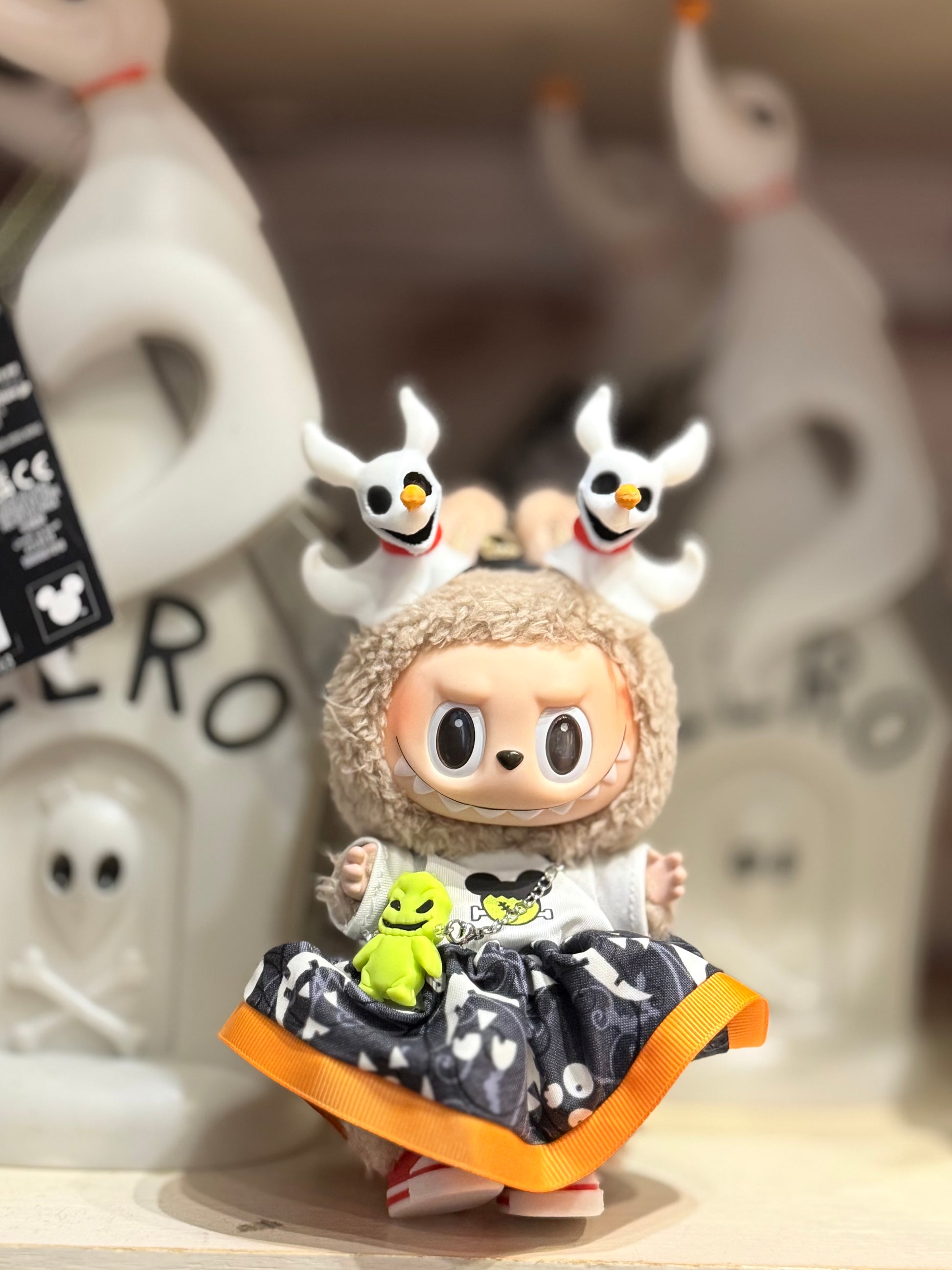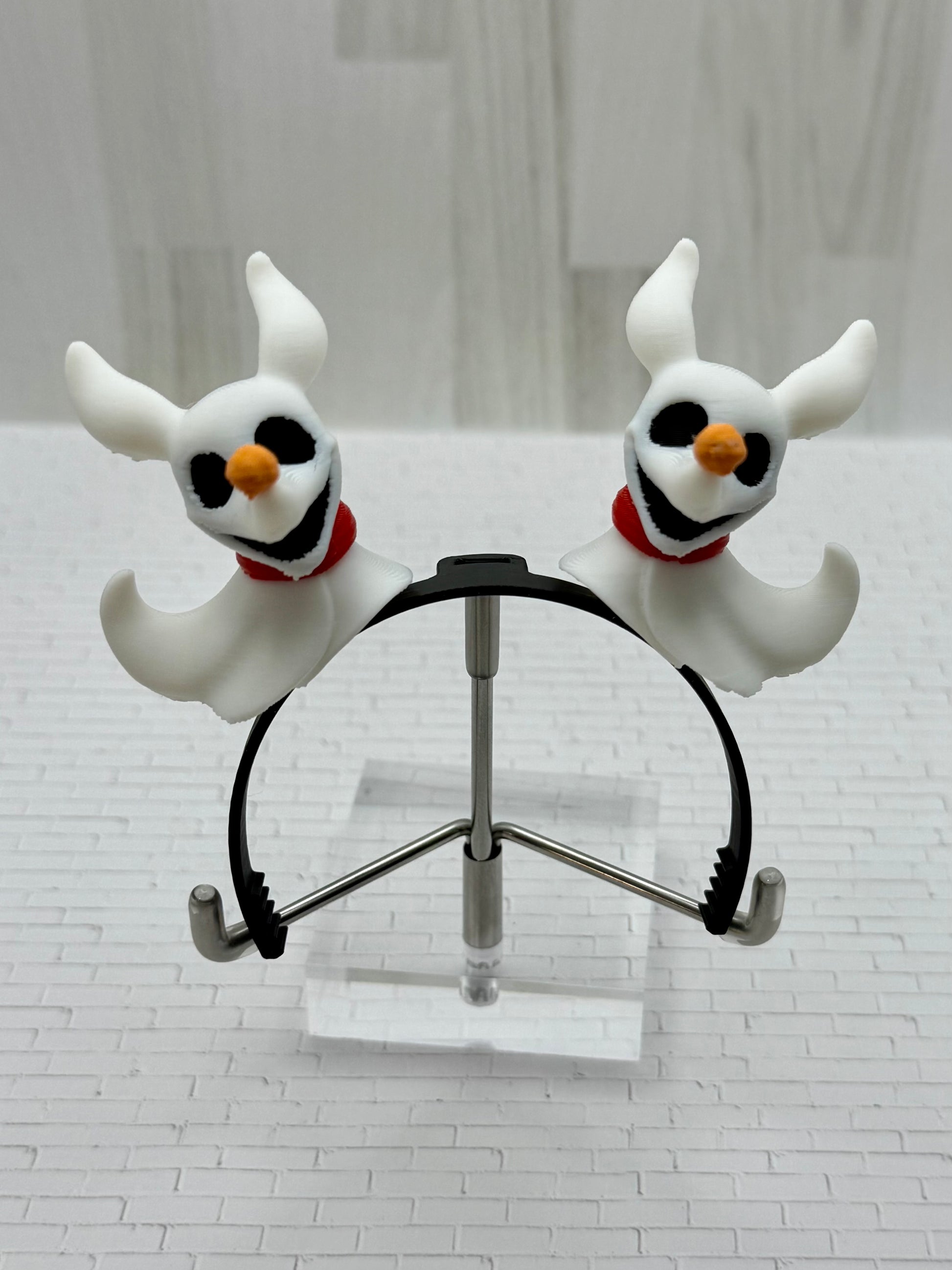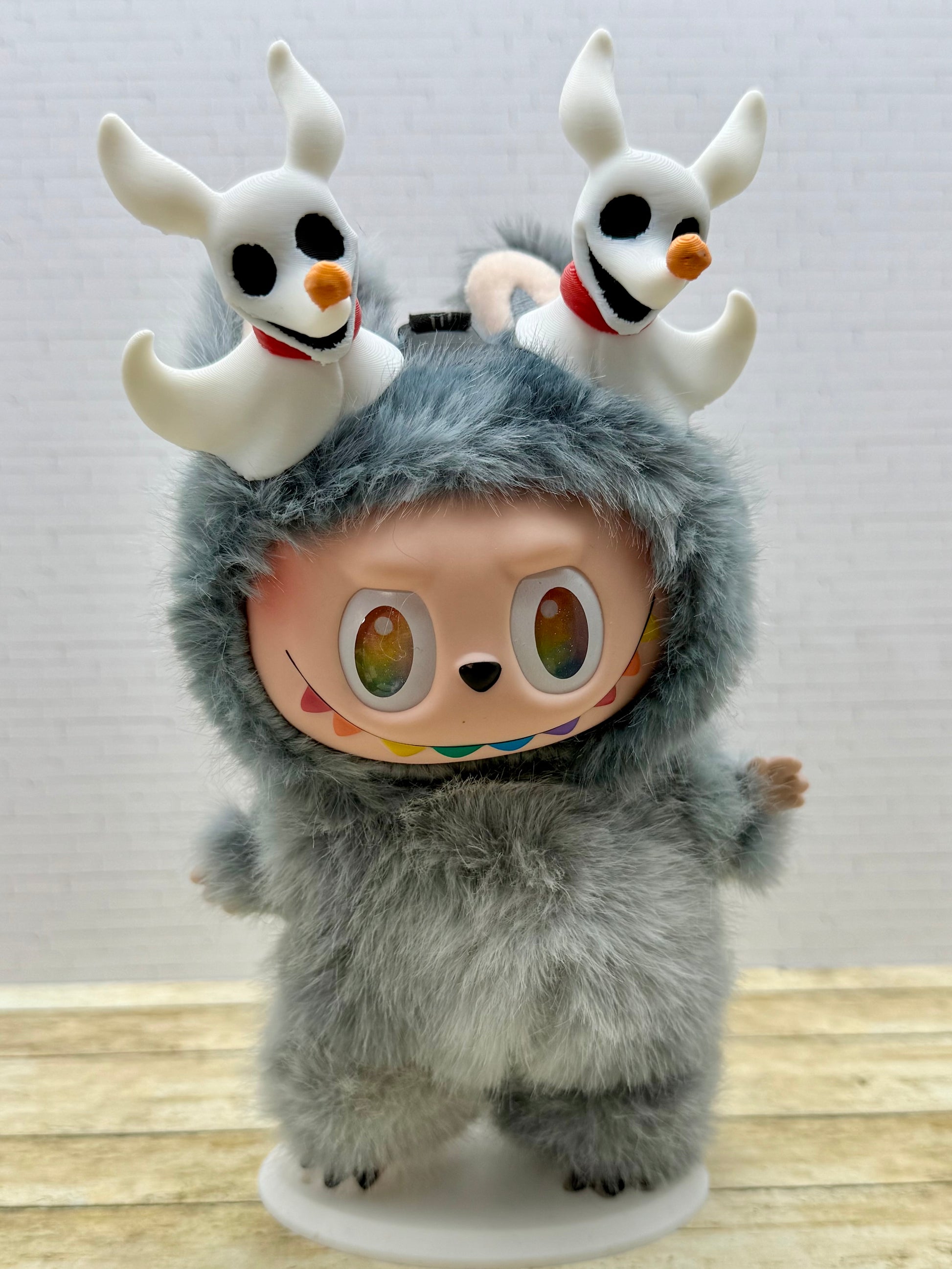 Add a spooky sidekick to your plush with this ghost pup ear headband, featuring floating dog ears with tiny pumpkin noses. 3D printed for durability and lightweight for display, the headband includes a built-in slot to secure onto your plush’s ribbon tag for a perfect fit. Designed for most 6–7" collectible plush and chibi-style figures, this accessory brings a playful Halloween vibe to photos, cosplay-inspired looks, and collector shelves. Doll not included.