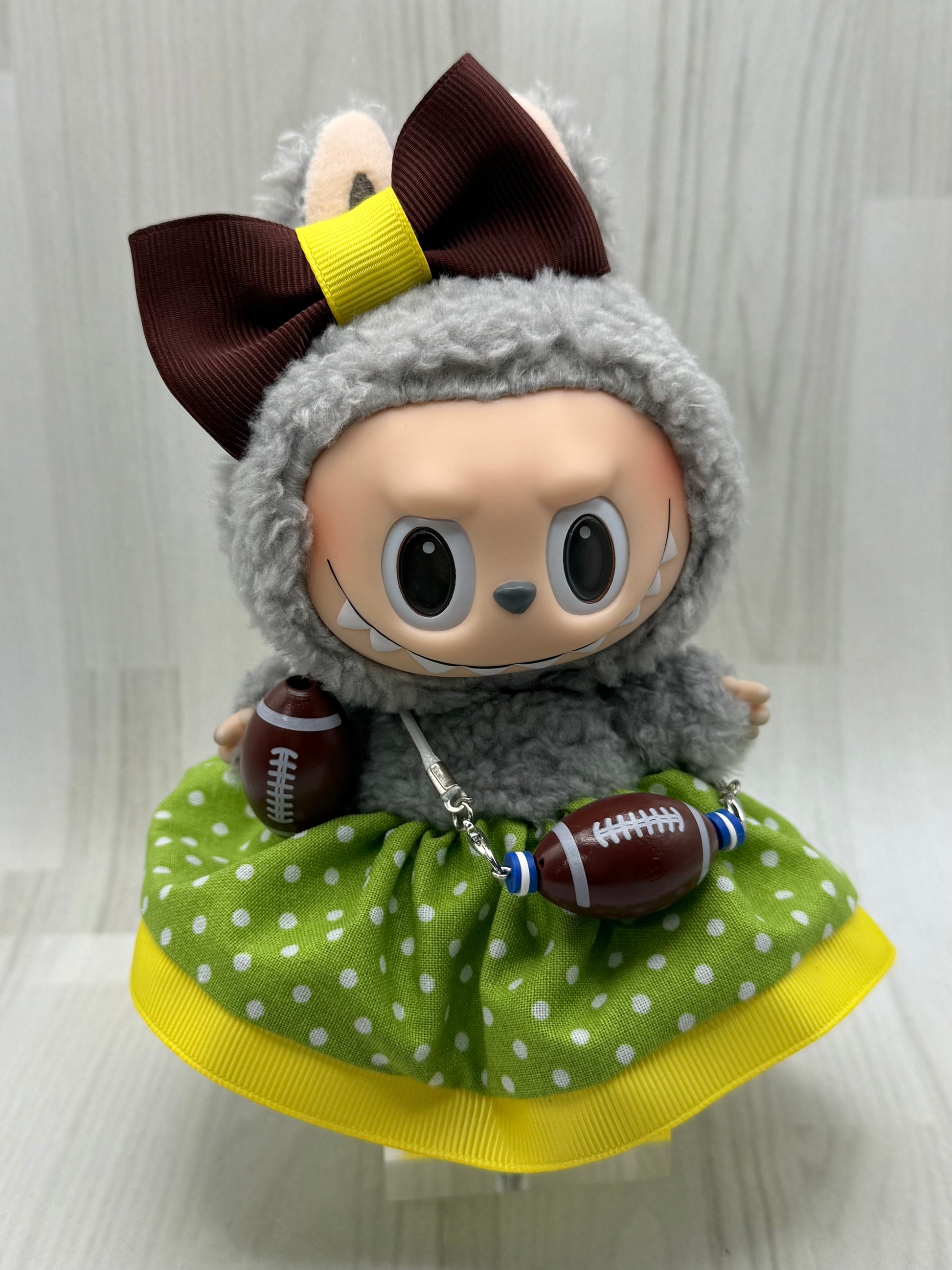Suit up your plush for game day! 🏈✨ Handmade skirts, bows, and mini football accessories are perfectly sized for 6–7" dolls like Labubu and Nuimos. Choose from outfit sets or accessory-only options, available in 9 team-inspired color combos. Display prop only; doll not included.