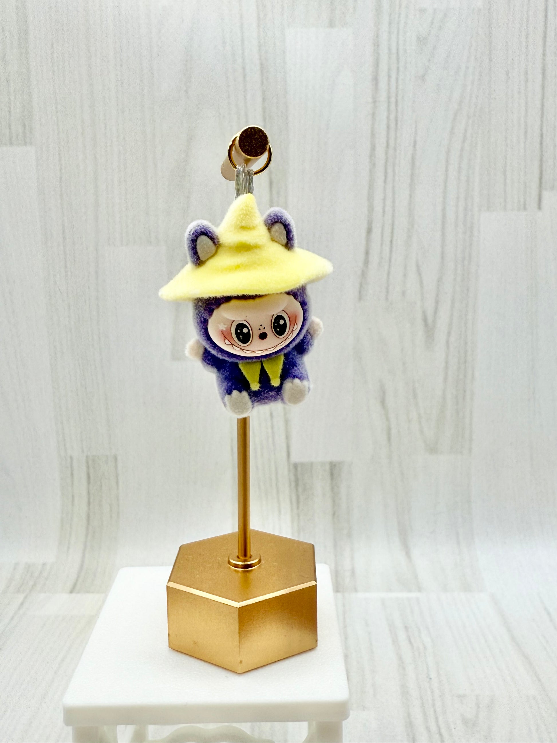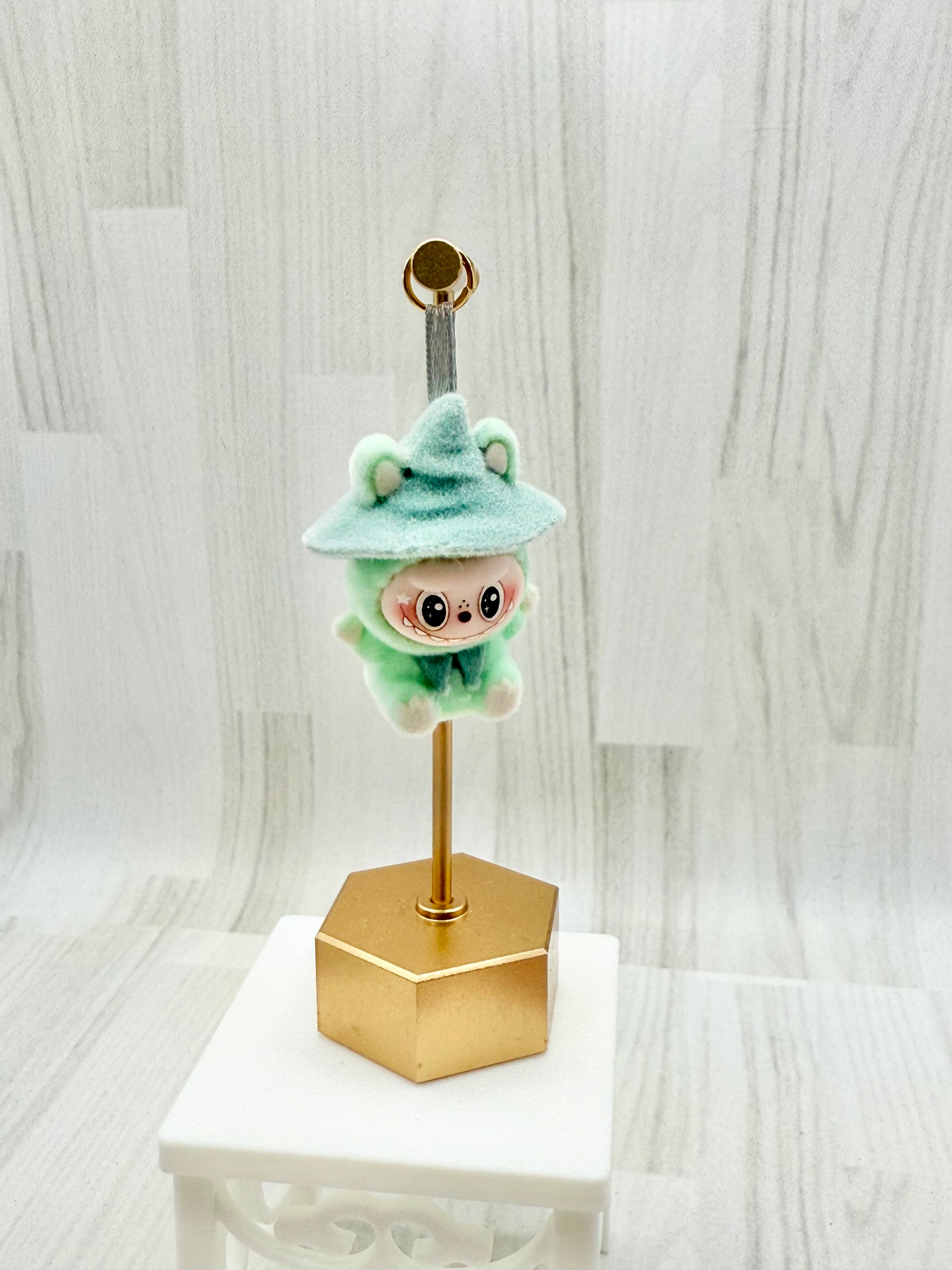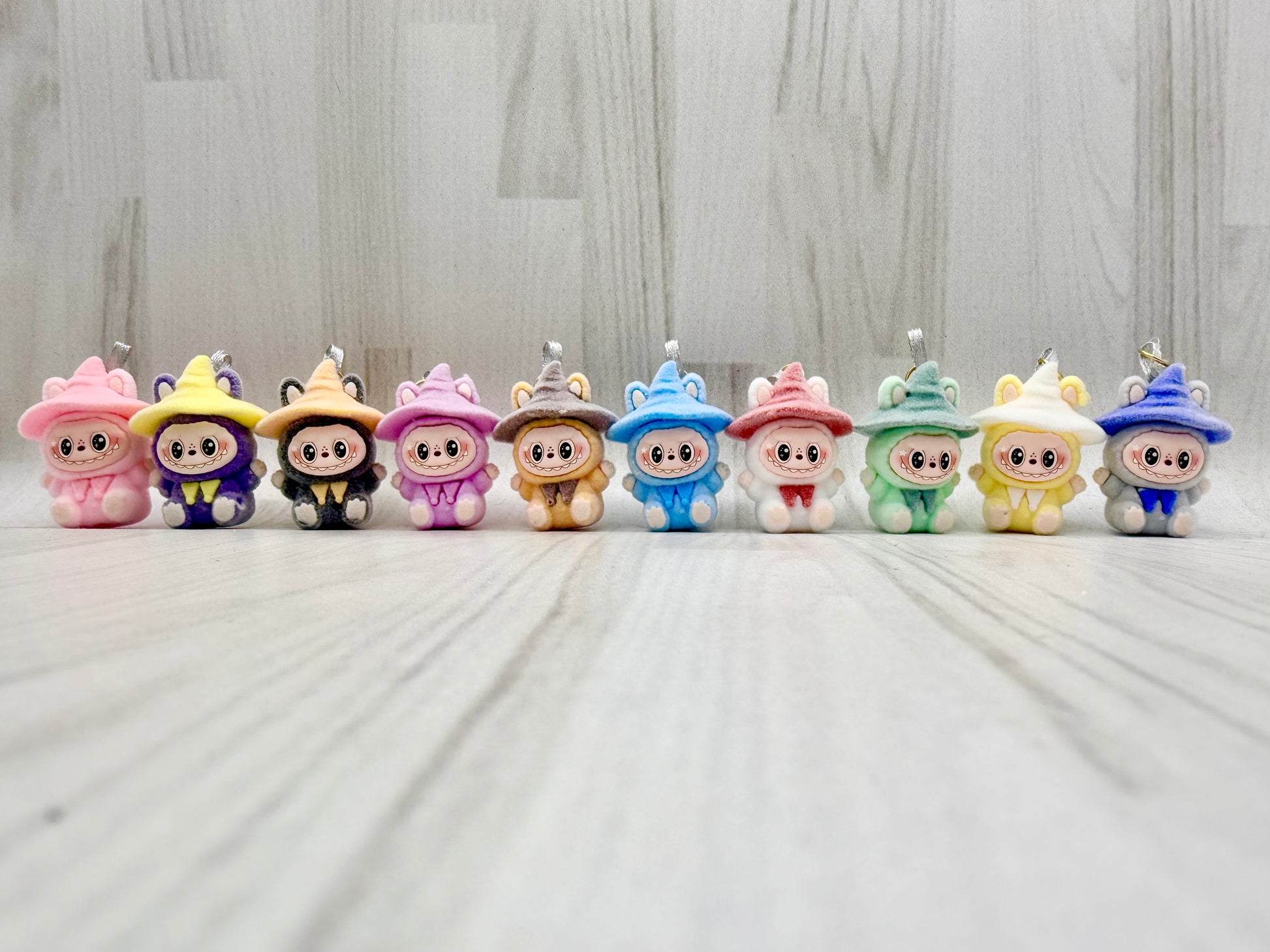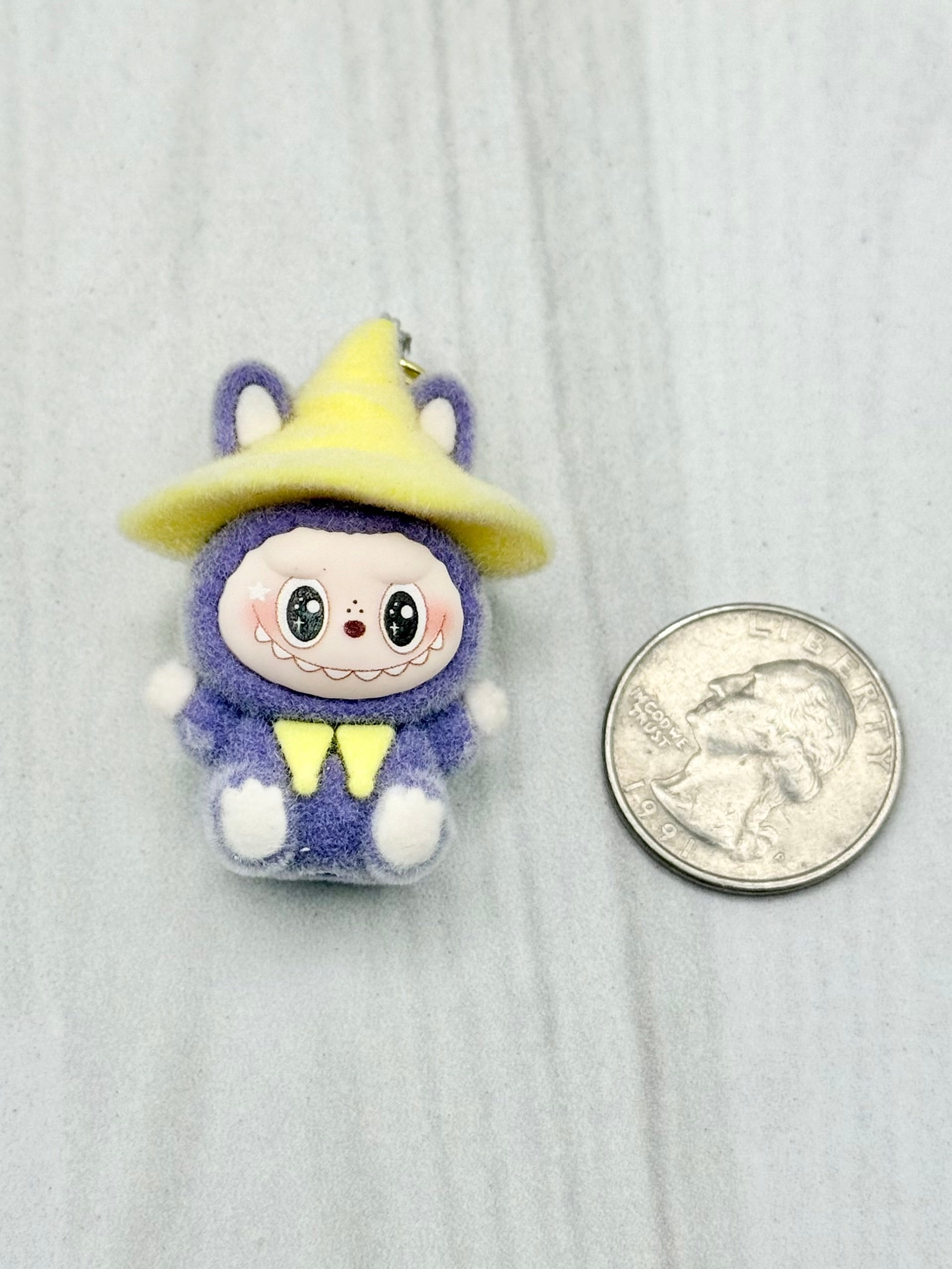 A little witchy mini-me for Labubu plush. Handmade 1.75" witch Labubu charm sized for 6–8 inch Labubu and Nuimos dolls. Comes in 10 colors and includes a complimentary silicone band so your plush can “hold” the charm. Doll not included.