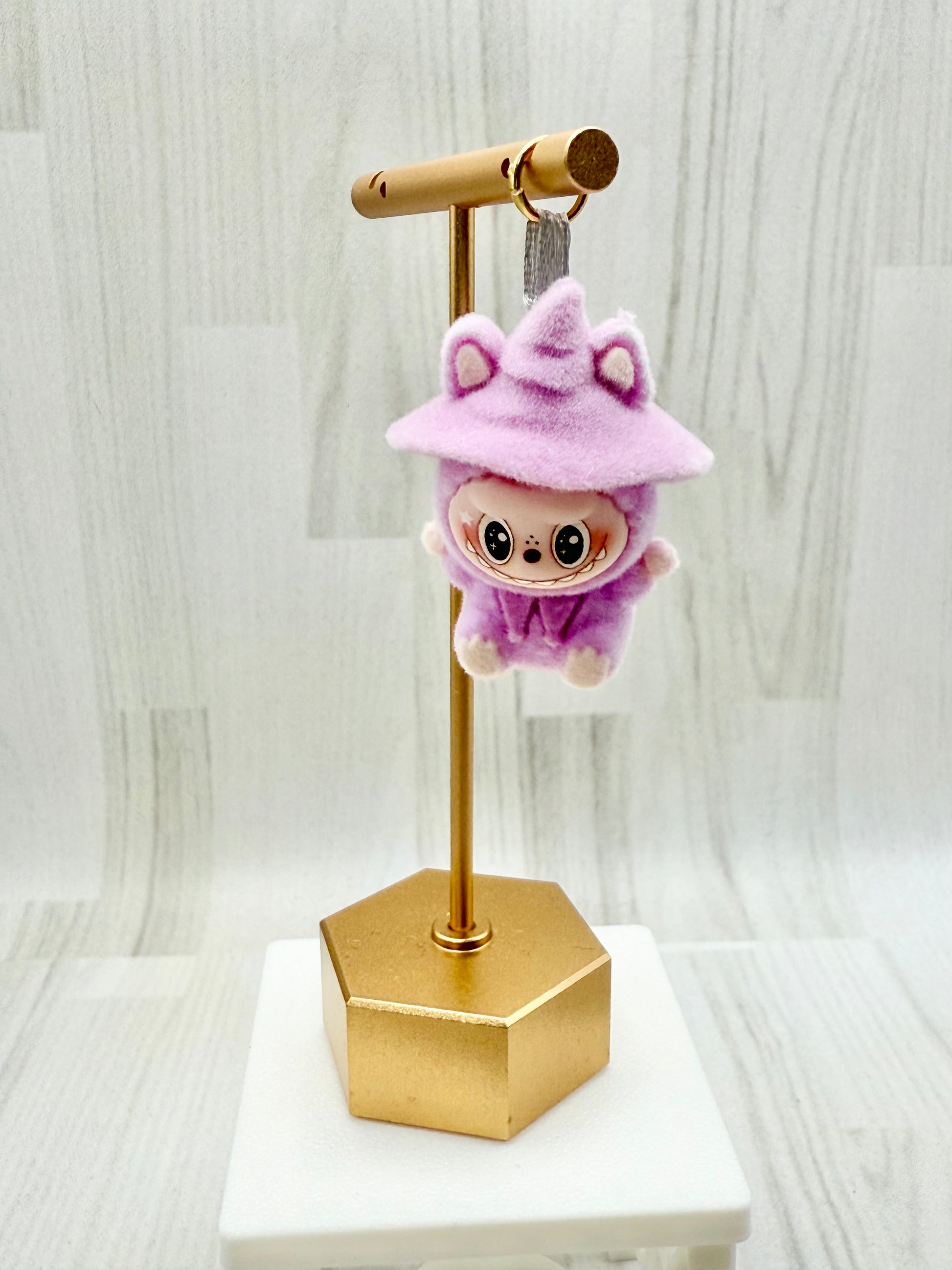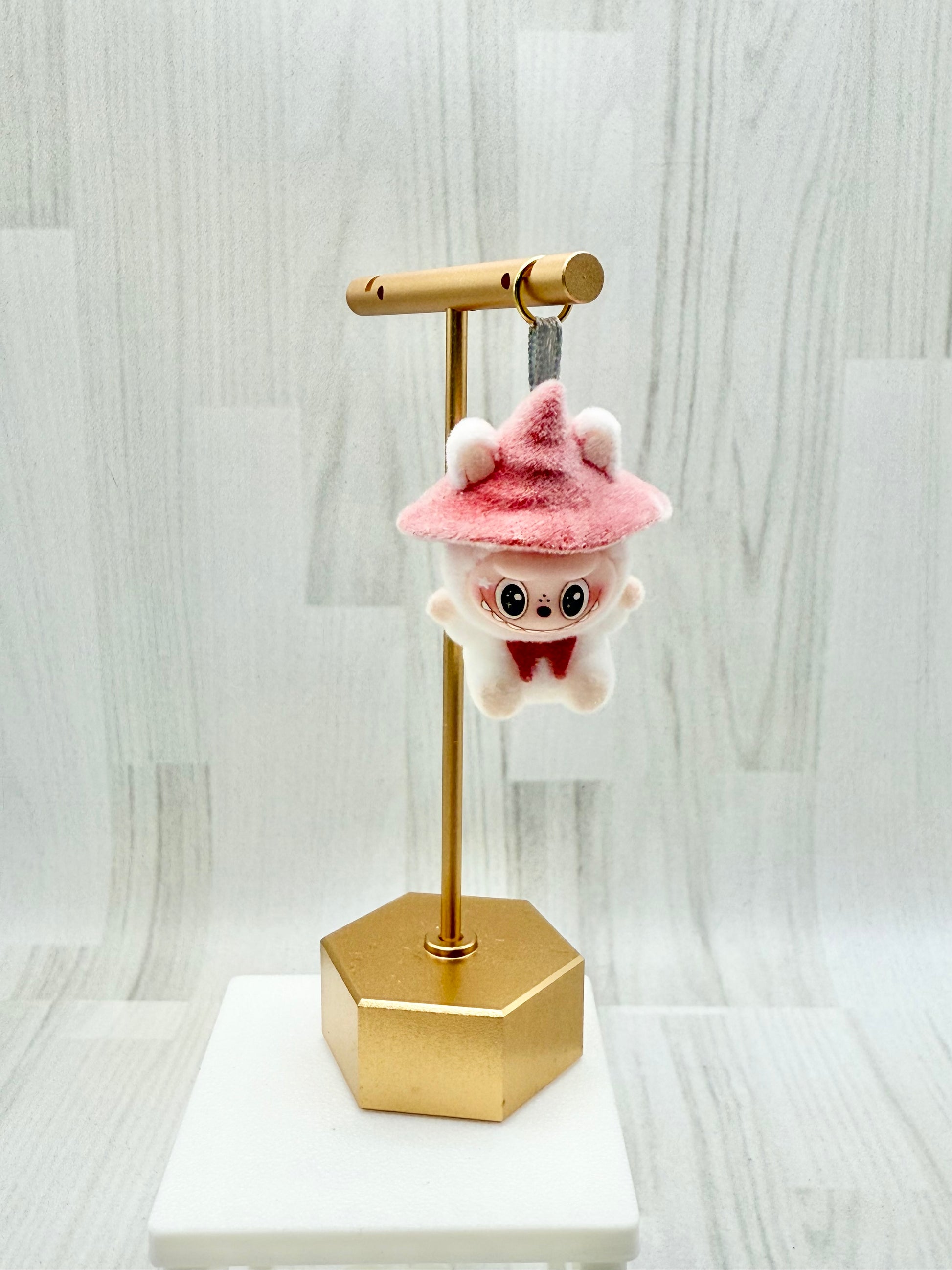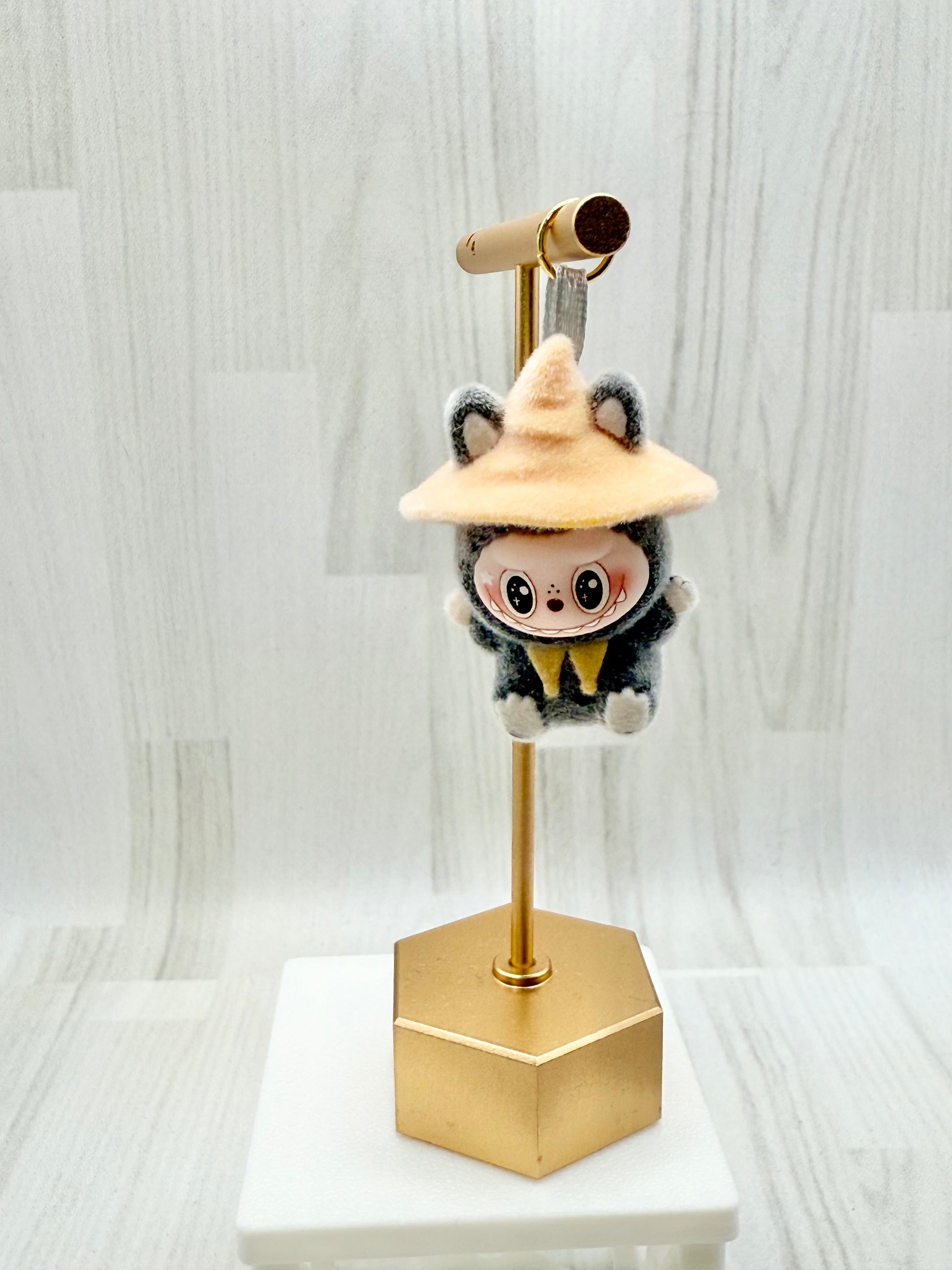 A little witchy mini-me for Labubu plush. Handmade 1.75" witch Labubu charm sized for 6–8 inch Labubu and Nuimos dolls. Comes in 10 colors and includes a complimentary silicone band so your plush can “hold” the charm. Doll not included.