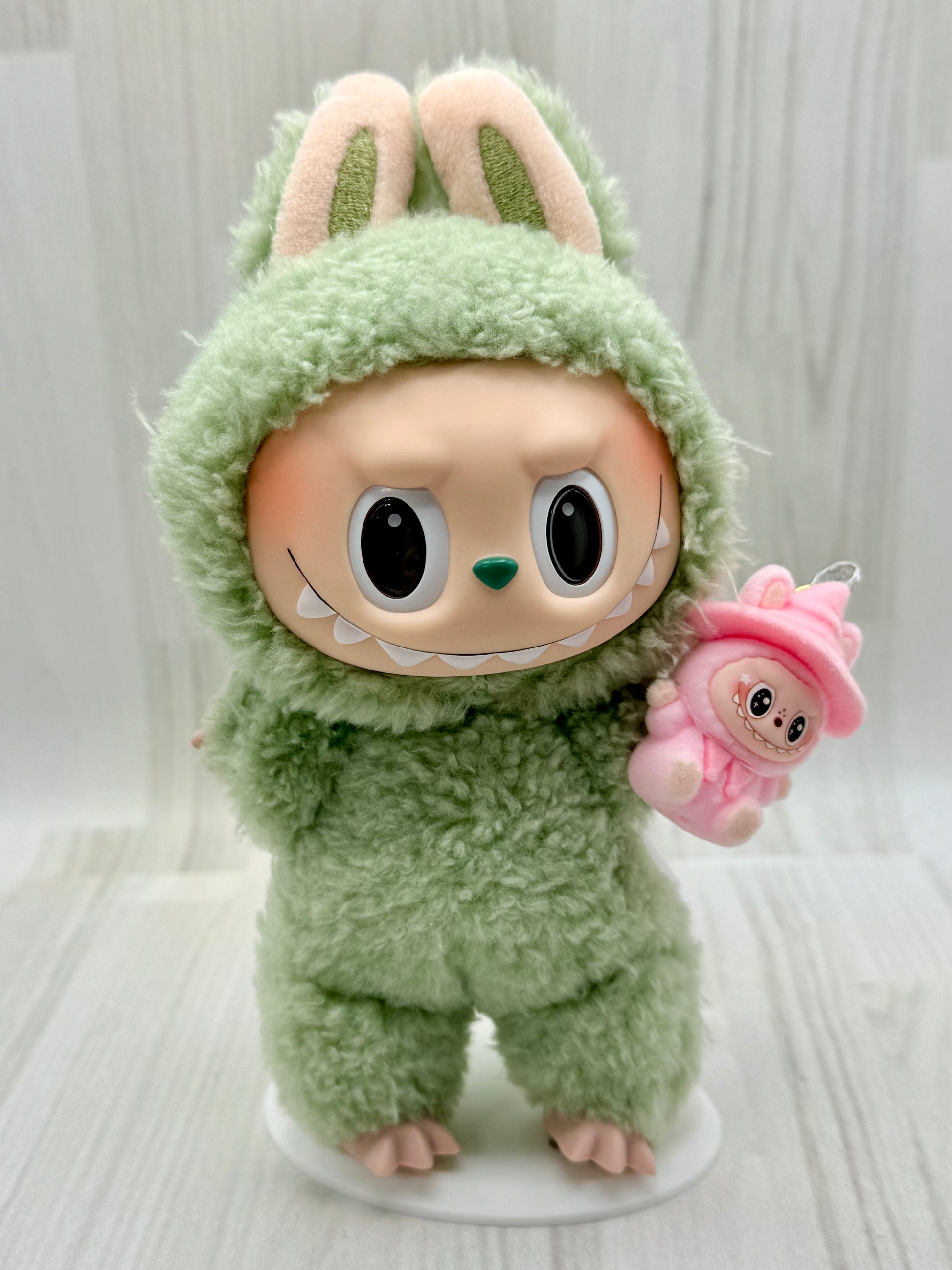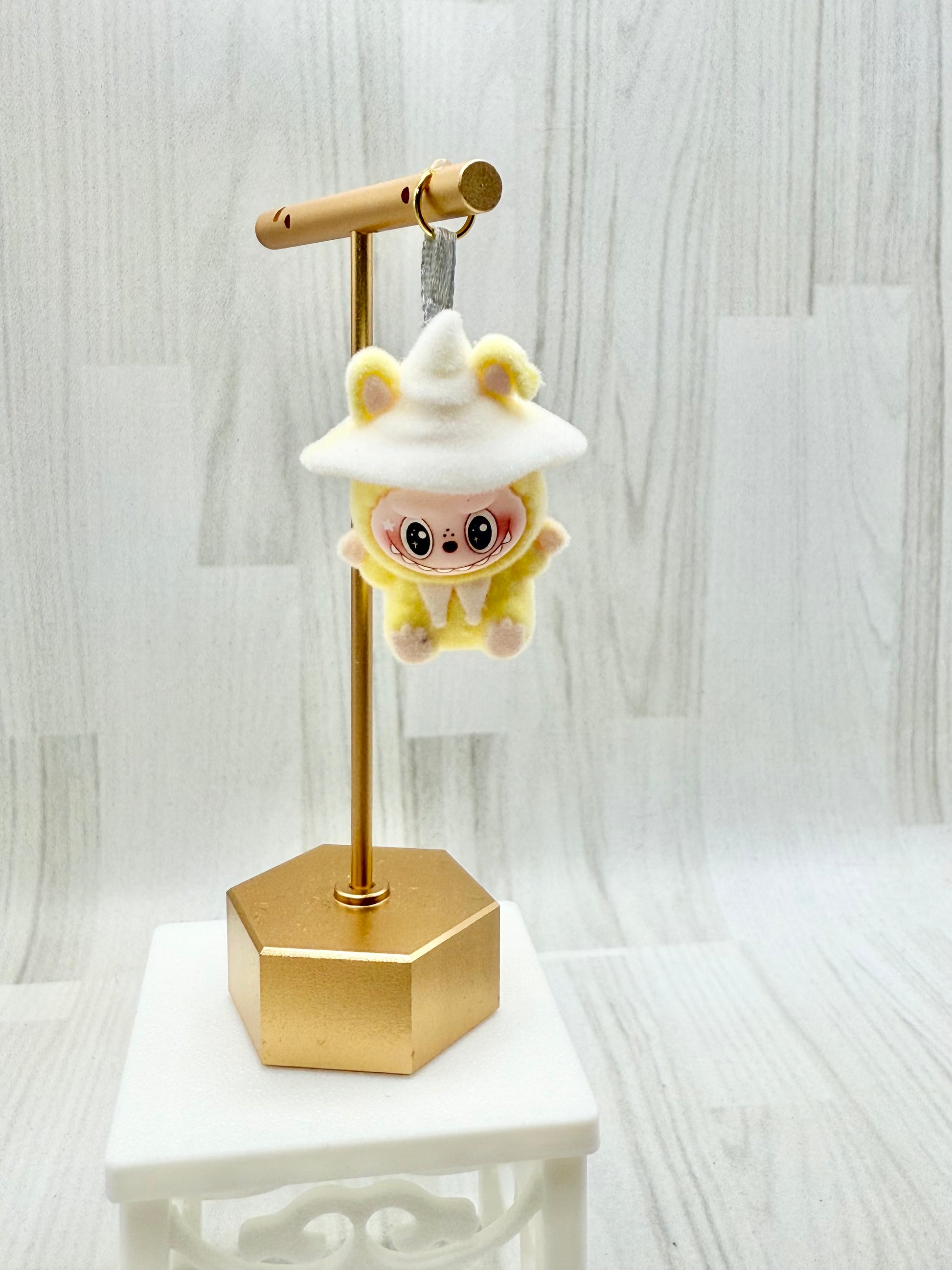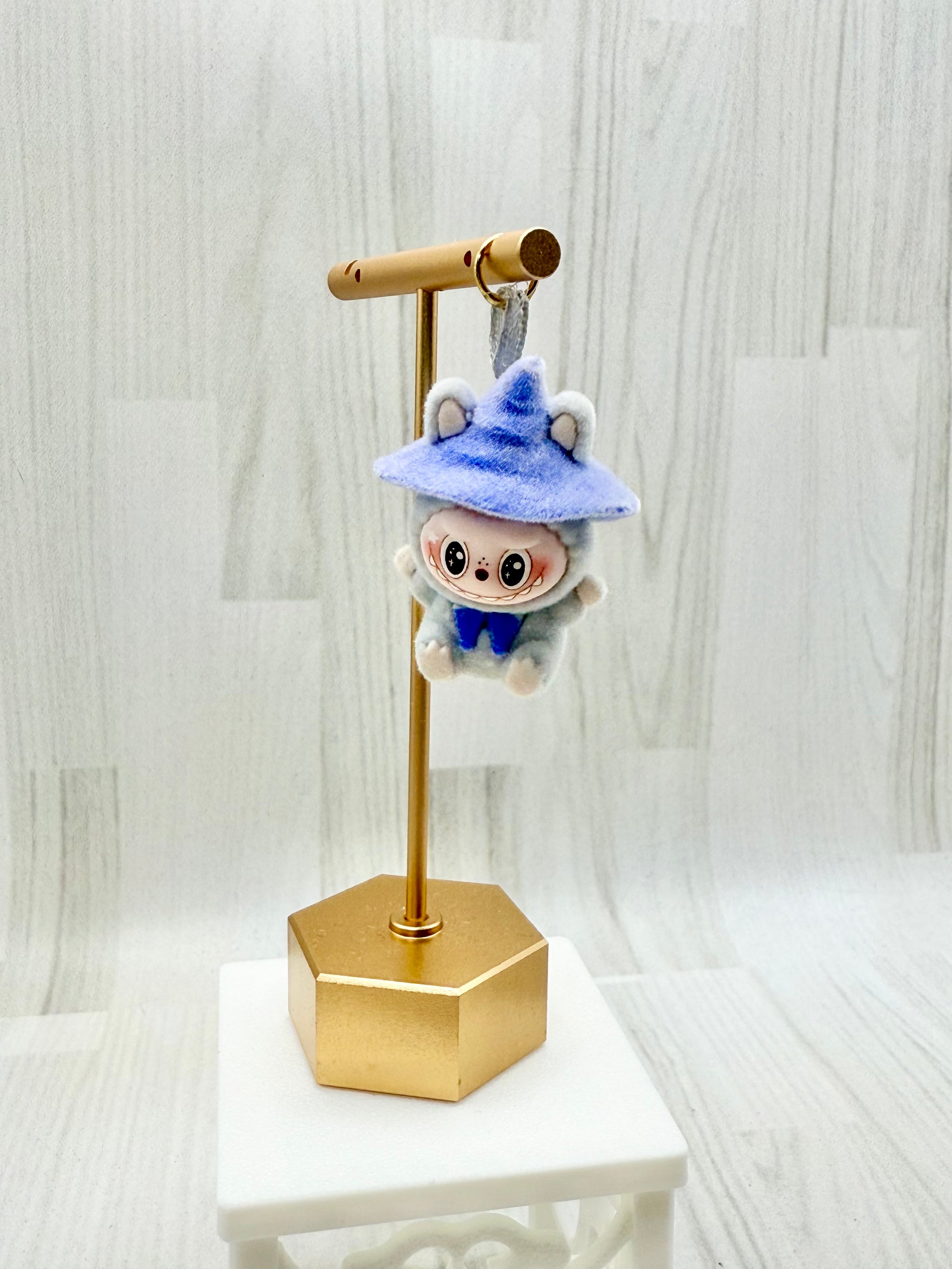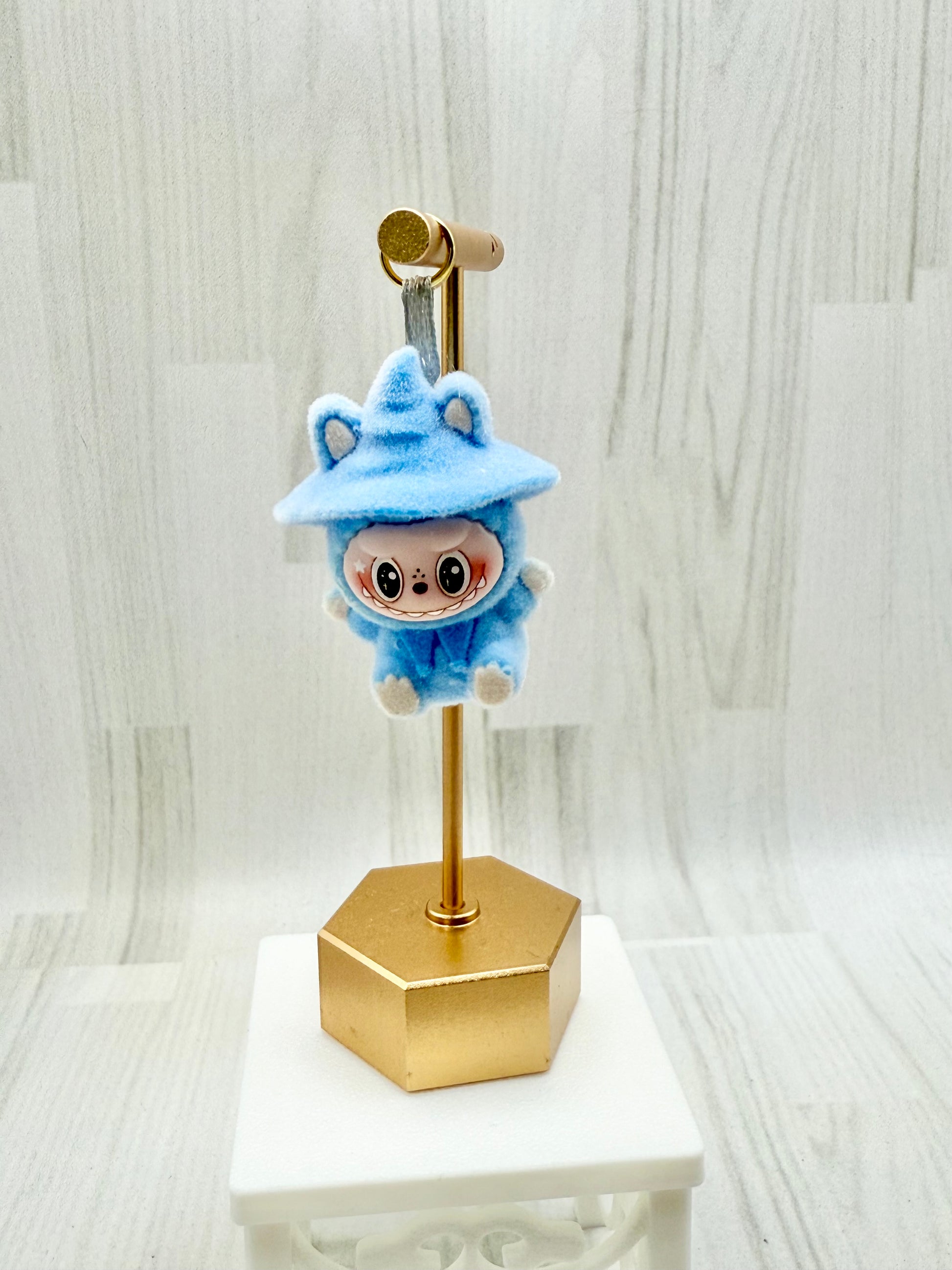 A little witchy mini-me for Labubu plush. Handmade 1.75" witch Labubu charm sized for 6–8 inch Labubu and Nuimos dolls. Comes in 10 colors and includes a complimentary silicone band so your plush can “hold” the charm. Doll not included.