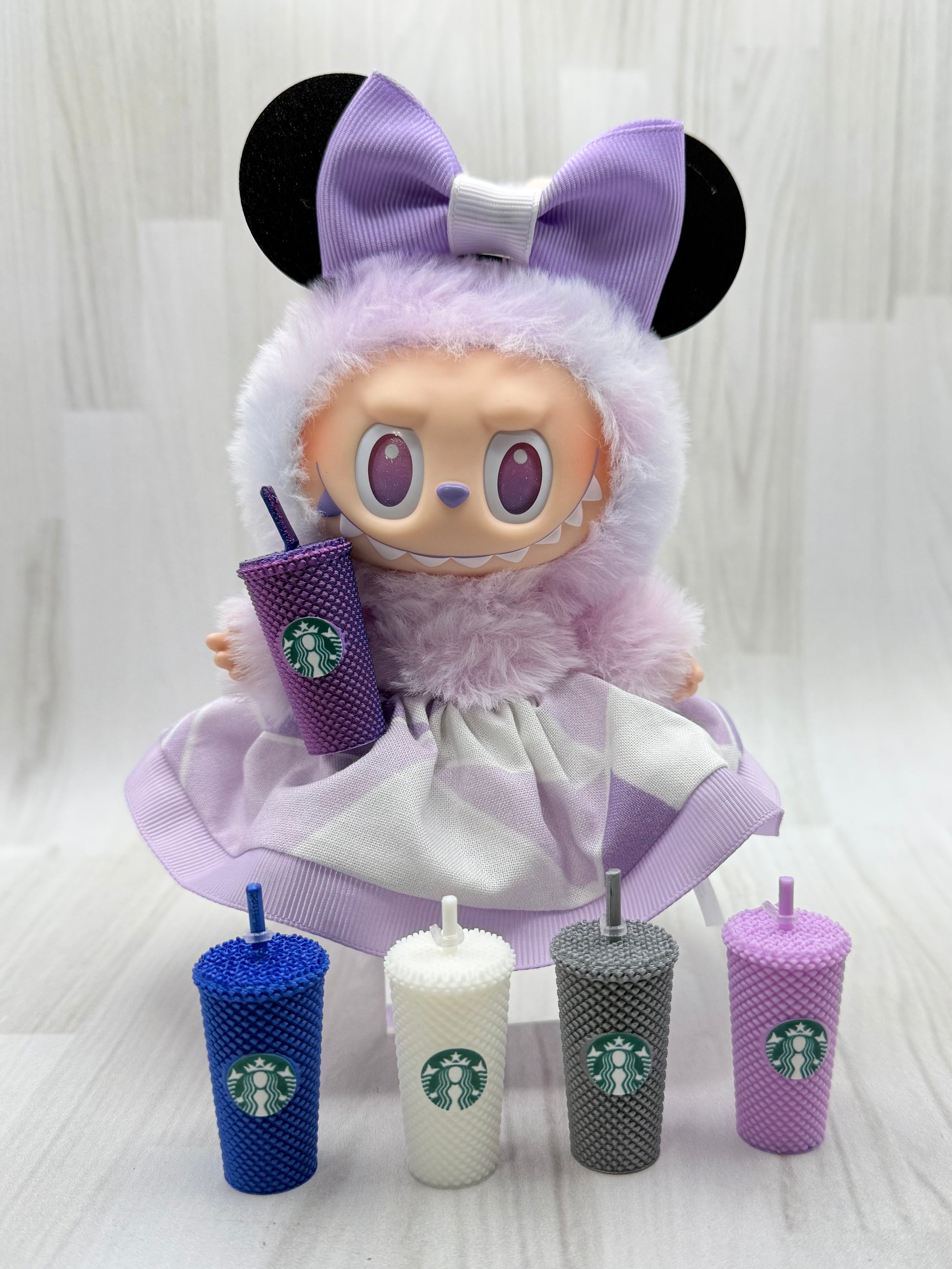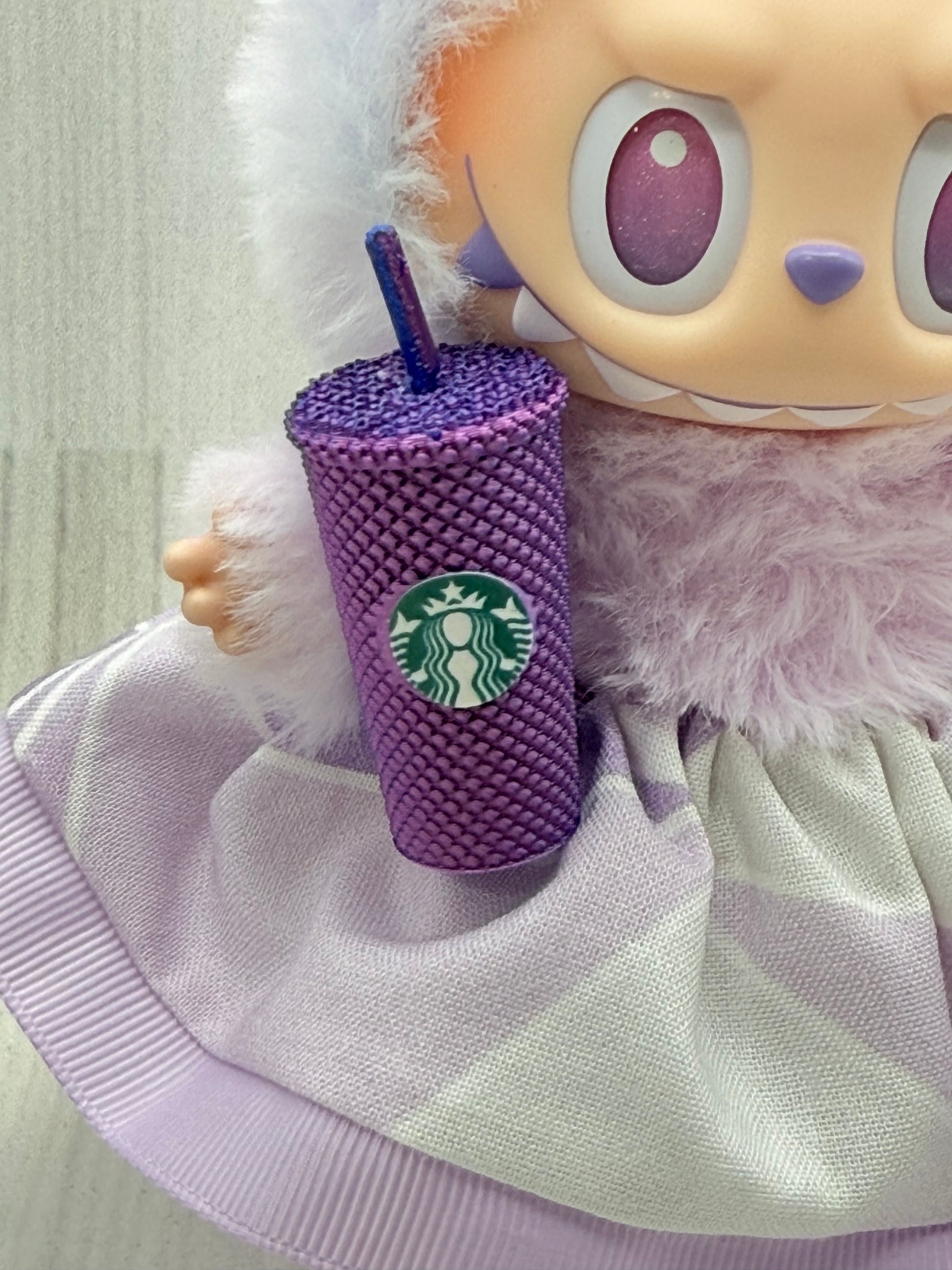 Your plush is ready for a caffeine run! ☕✨ Designed & 3D printed in-house and hand-finished, these mini tumblers (approx. 2" tall) are sized for 6–8" plush like Labubu and Nuimos. Each cup includes a custom handle and a complimentary silicone band so your plush can “hold” it, plus a reinforced straw and a coffee-shop–style vinyl sticker for an authentic mini look. Available as single cups or bundle sets. Display prop only; doll not included.