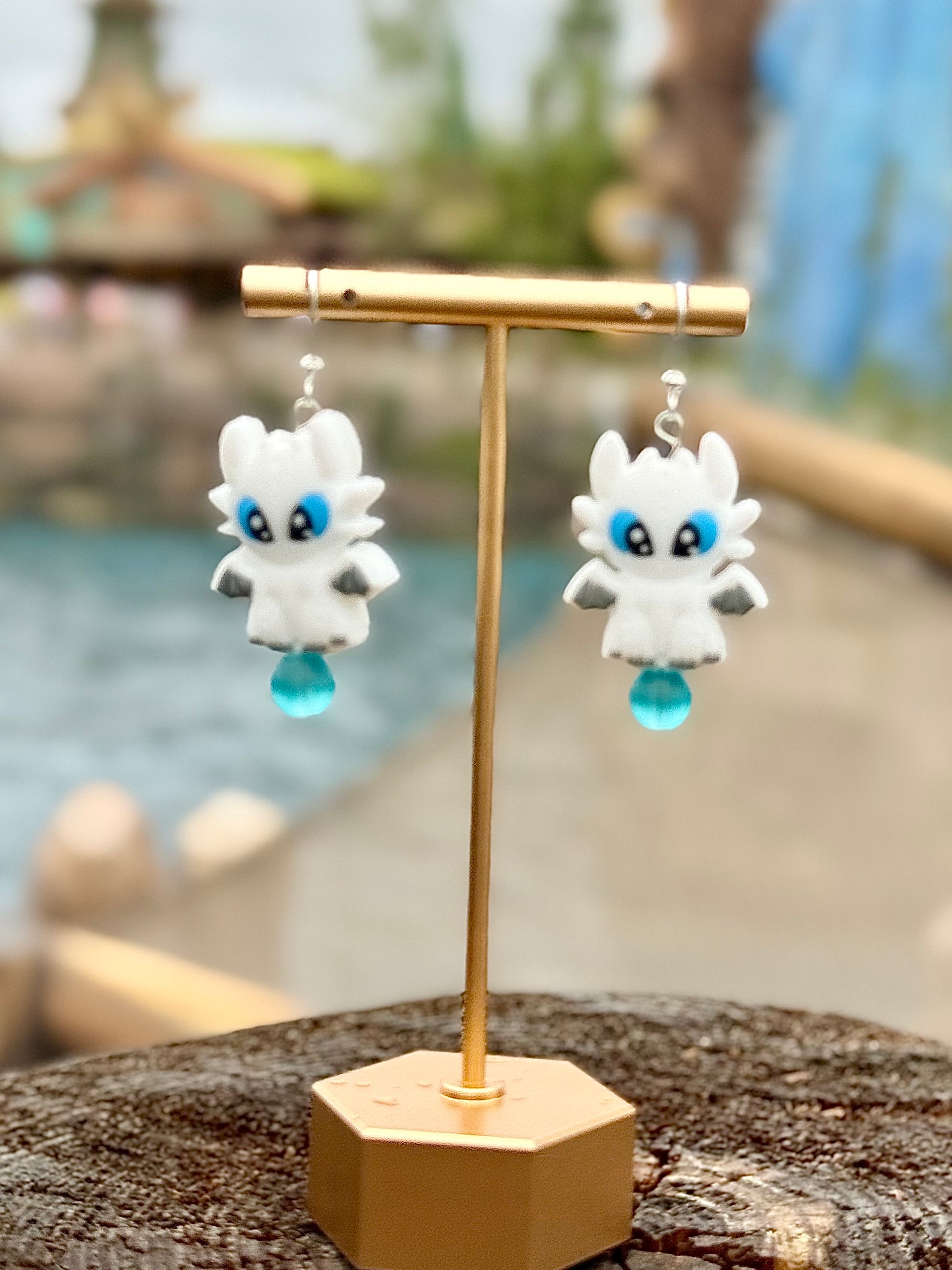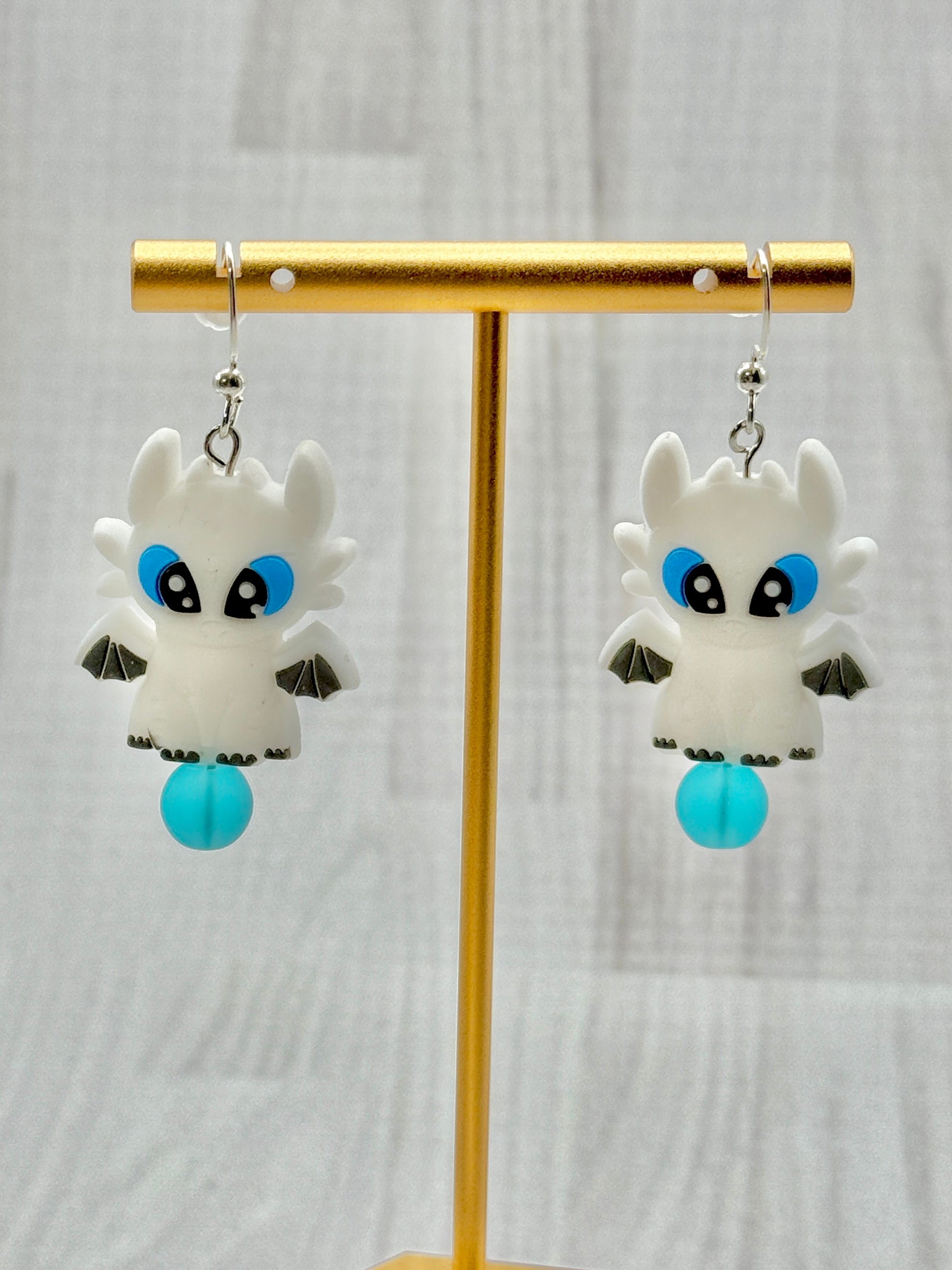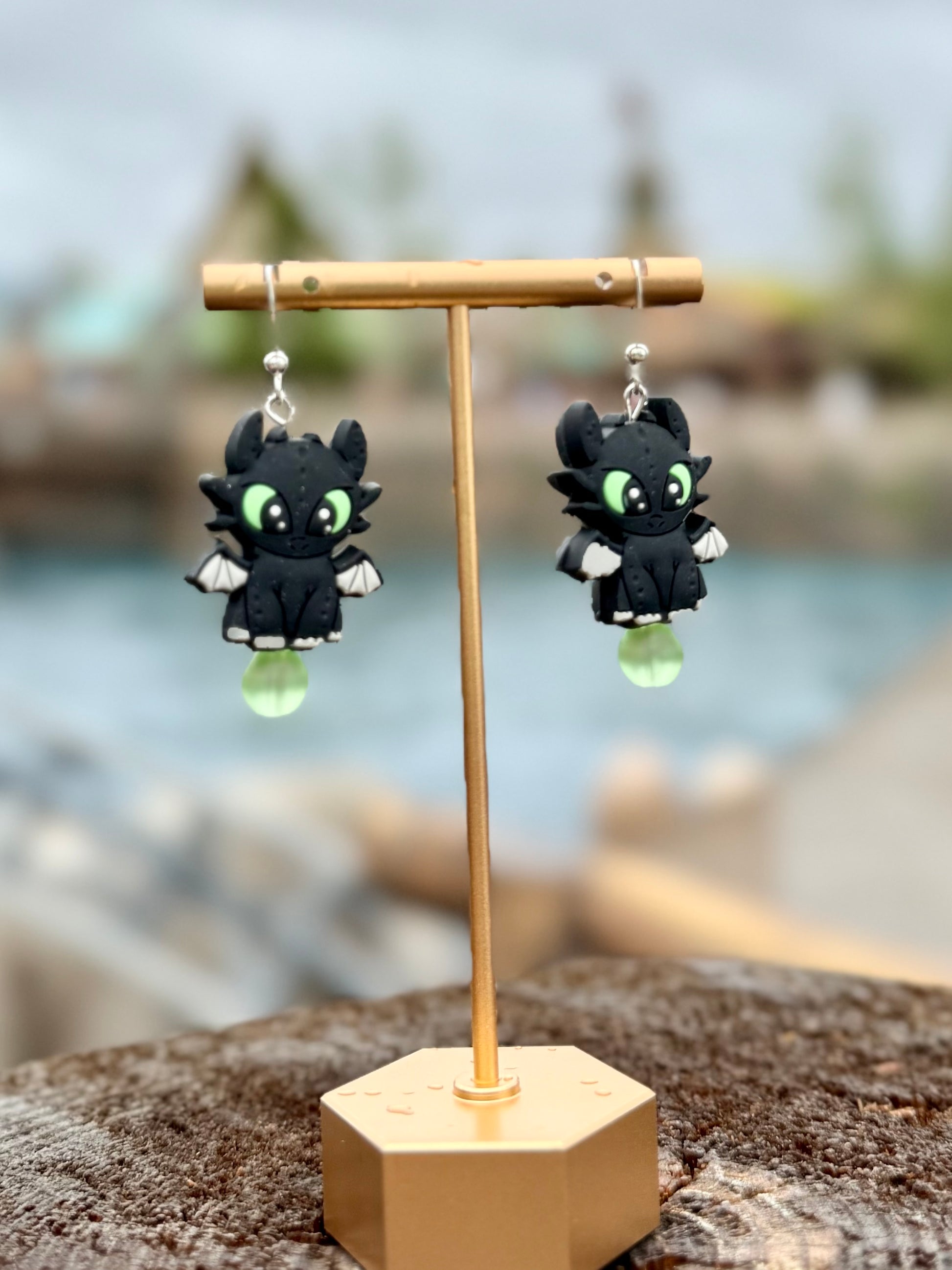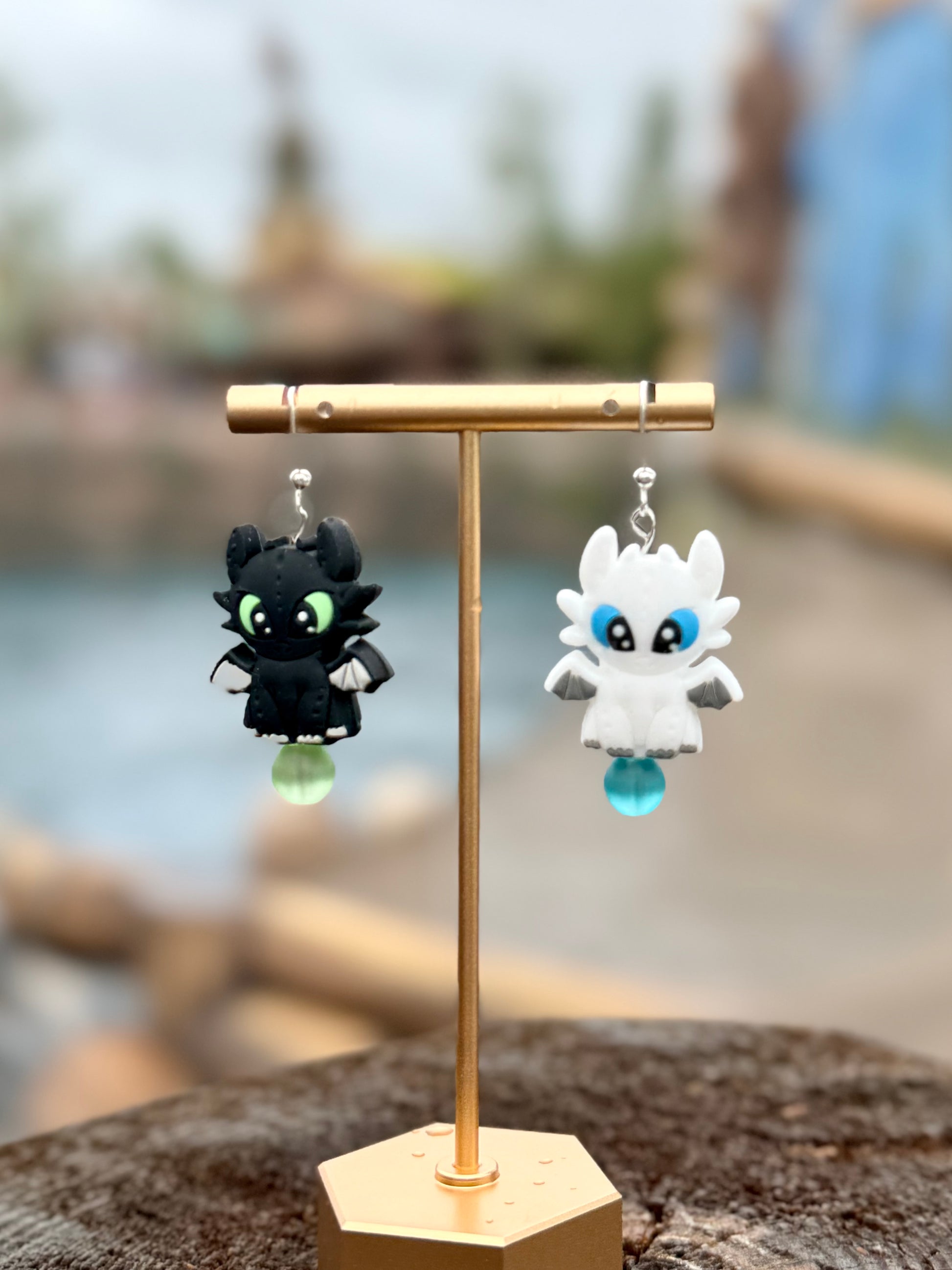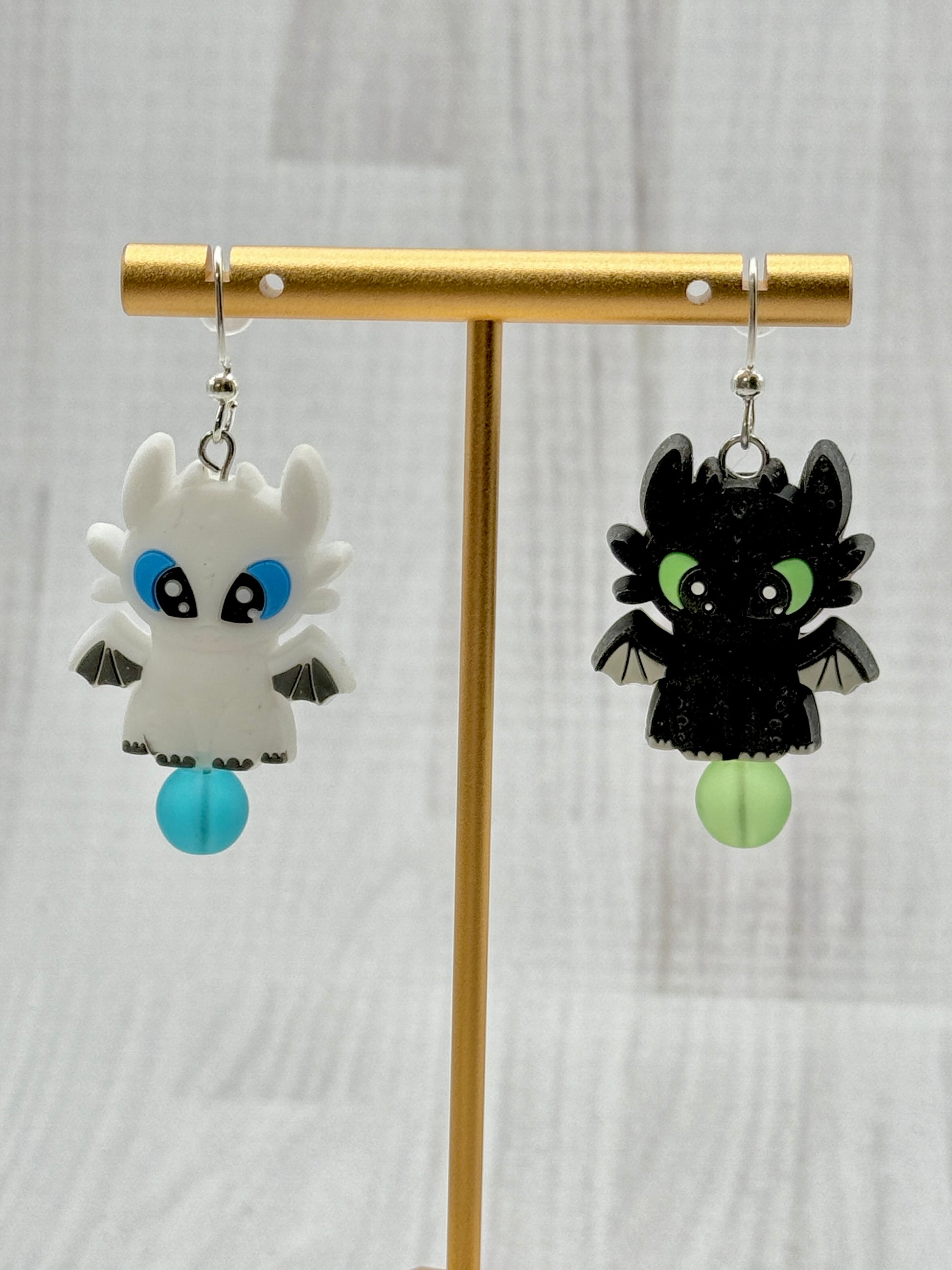 Bring a touch of dragon magic to your style with these handmade dangle earrings. Choose from three styles — a night dragon pair, a light dragon pair, or a mixed set with one of each. Each earring features a 1.25" silicone charm with an 8mm glass bead (green for night, blue for light), finished with nickel-free hooks for comfy wear. Lightweight, fandom-inspired, and perfect for daily outfits, gifts, or themed events.