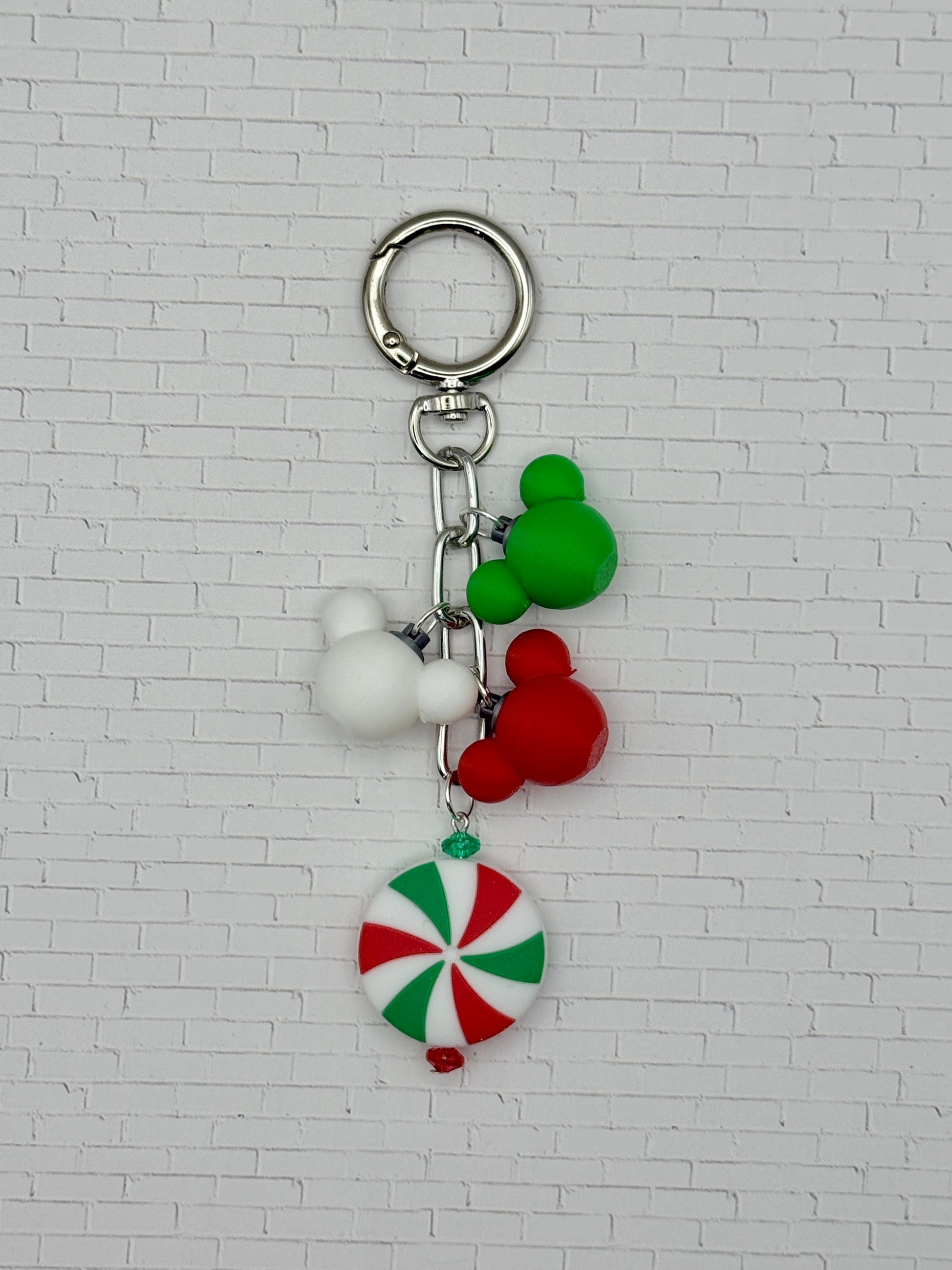 π Add a sweet touch of holiday cheer to your bag or keys with this Peppermint Ornament Keychain! Featuring a festive red-and-green peppermint charm, colorful accent beads, and three 3D printed Mickey-style ornament charms, this playful piece brings merry park-day vibes wherever you go.