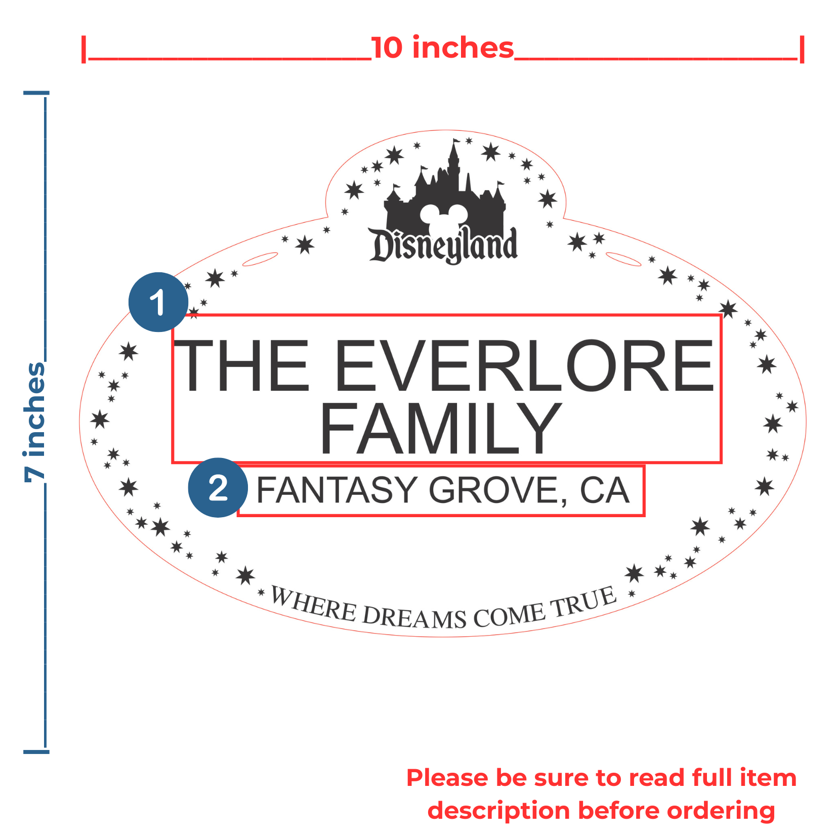 Make your stroller stand out at Disneyland with this personalized wooden sign inspired by cast member name badges. Each piece is engraved in-house by Everlore Creations, sealed for outdoor use, and finished with a striped ribbon for easy hanging.