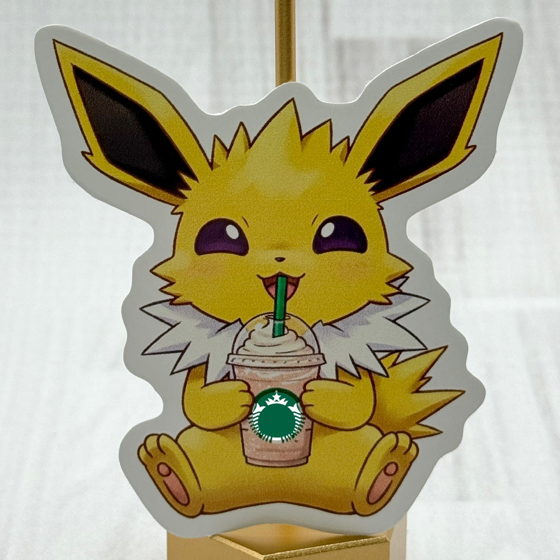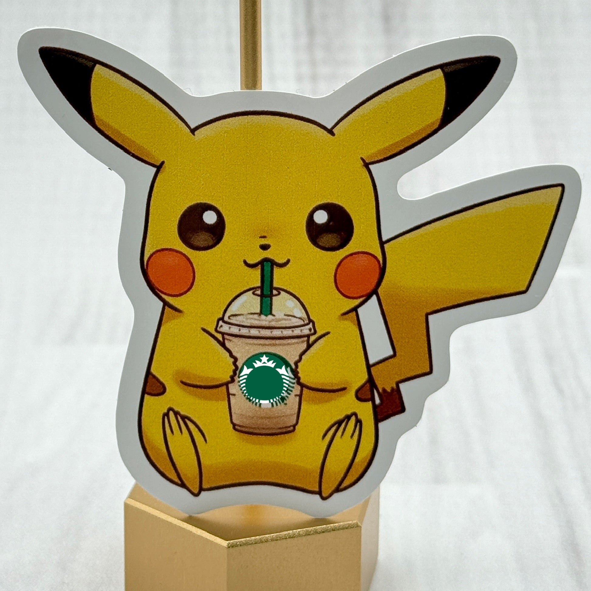 Your favorite fandom friends, now with coffee in hand! These 3" vinyl stickers feature chibi-inspired creatures enjoying their own frothy drinks — from dragons to pocket pals — making them perfect for laptops, water bottles, planners, or coffee tumblers. Each design is waterproof, weatherproof, and professionally printed for a vibrant, long-lasting finish. Choose your favorite character or collect the full brew crew.