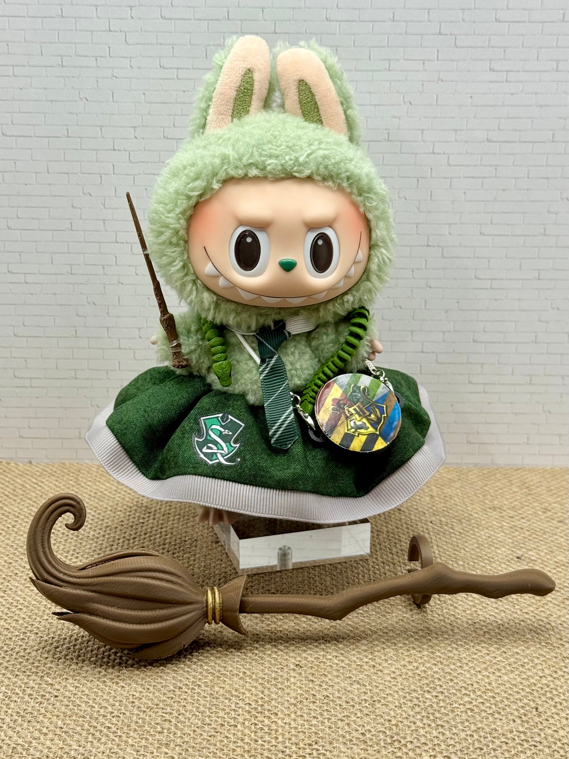 Give your mini plush a sleek green-and-silver wizard house look. Pick a skirt, tie, wand, purse, broom, or flexi snake—or grab the full set for ambitious style. Sized for 6–7" collectibles. Doll not included.